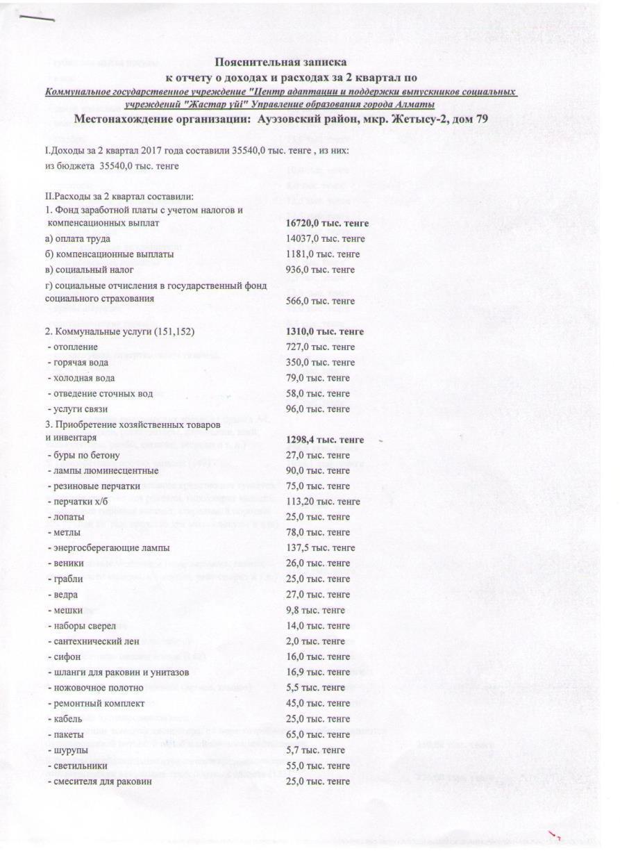 Отчет о доходах и расходах за 4 Квартал 2016 и пояснительная записка