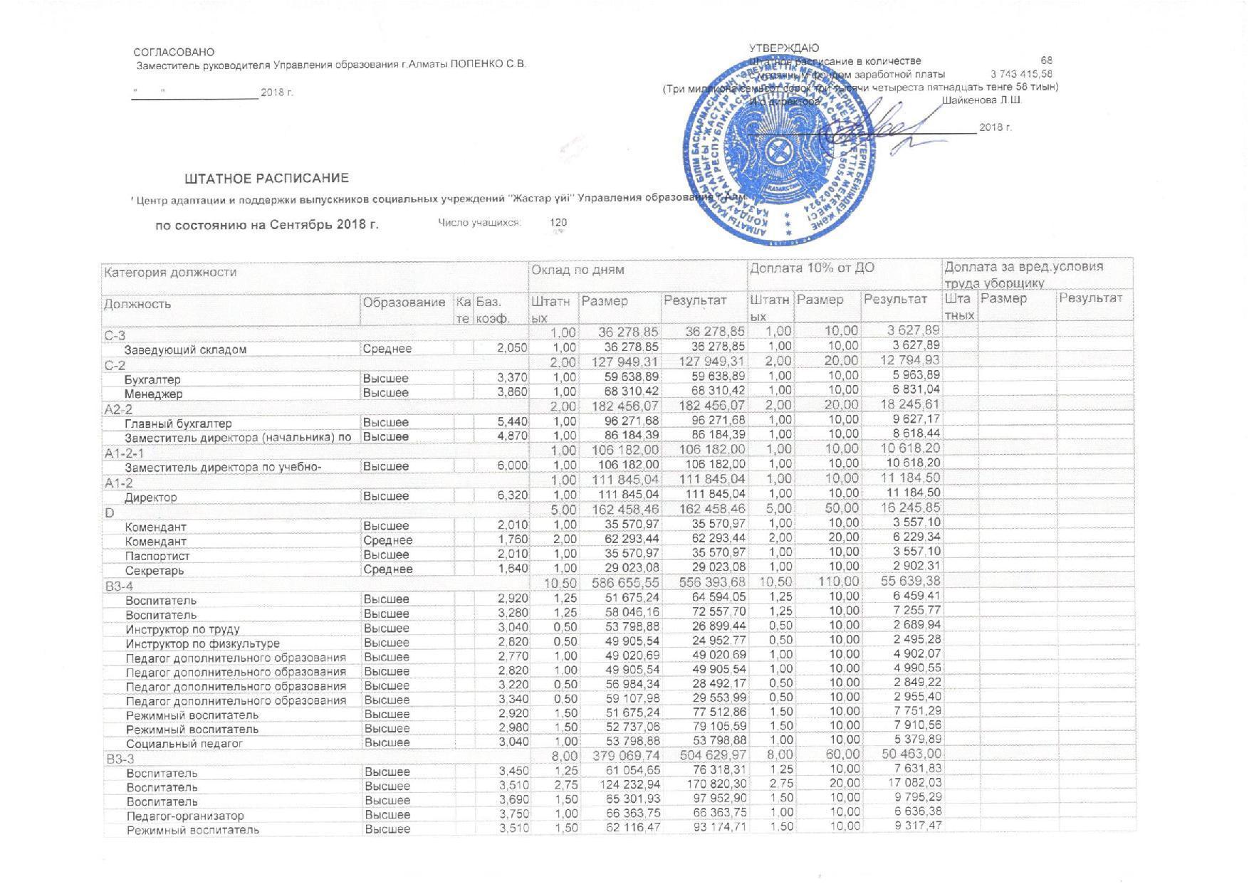 Штатное расписание